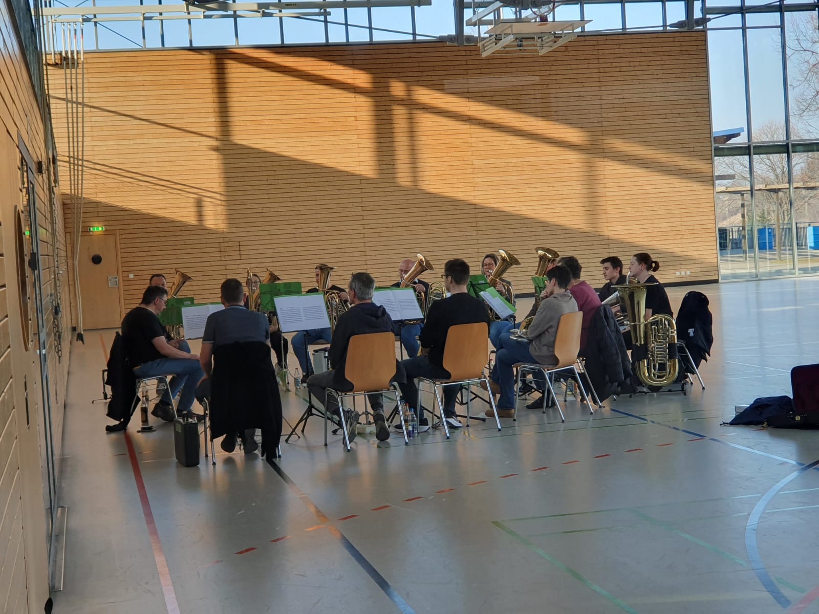 Am Sonntag folgte die Gemeinschaftsprobe, bei der die erarbeiteten Passagen wieder in der gesamten Kapelle zusammengeführt wurden.